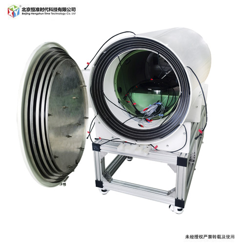 高精度磁屏蔽裝置是為科研生產需要,提供一個零磁空間。磁屏蔽筒為多層結構,內外為鋁層,中間為多層高導磁坡莫合金,一端封底,一端活蓋,封底端及活蓋端開孔。屏蔽筒配有鋁托架一個,消磁器一個,消磁電纜。內外鋁筒及鋁托架表面噴塑。